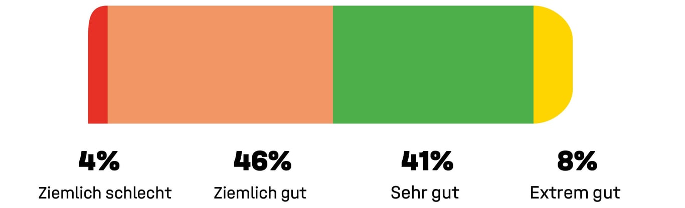 Wenn das physische Arbeitsumfeld schon einen Einfluss auf den Umsatz hat, dann sollten die besten Arbeitsbedingungen gegeben sein. Aber wie? Die Umfrage zeigt, dass es großes Potential für Verbesserung gibt, was sich wiederum auf die Profitabilität im Unternehmen auswirkt. Nur ein kleiner Prozentsatz der Führungskräfte gibt an, dass die Ausstattung und die Geräte bei ihnen Arbeitsplatz extrem gut sind.