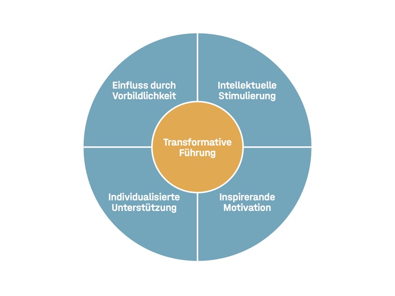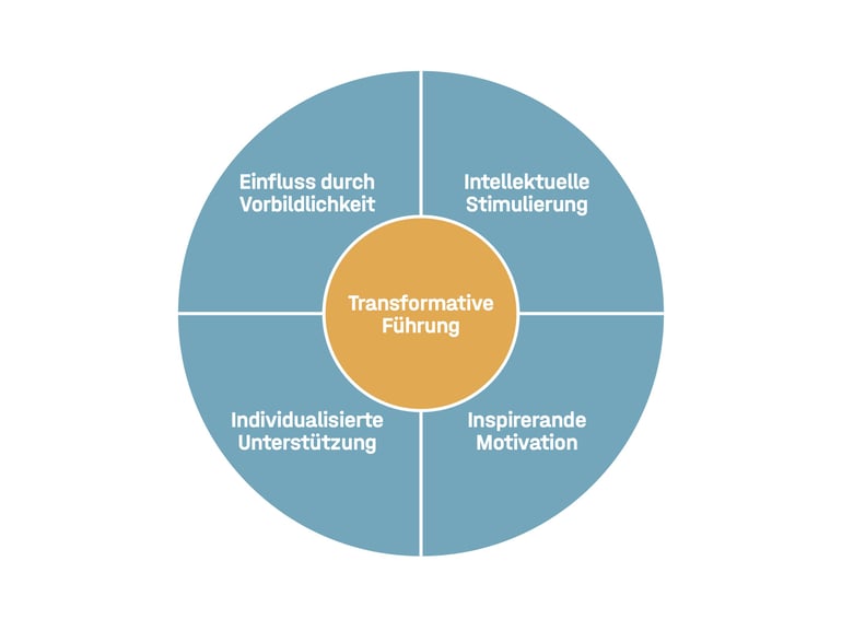 Transformative Führung wurde von James MacGregor Burns entwickelt und ist ein Führungsansatz, bei dem die Führungskraft und die Mitarbeiter über ihren individuellen Vorteil hinaus zusammenarbeiten, um Veränderungen zu schaffen und gemeinsame Ziele zu erreichen. Die Aufgabe der Führungskraft besteht darin, ihre Mitarbeiter sowohl als Gruppe als auch als Einzelperson einzubinden, zu ermutigen und zu fördern. Transformative Führung setzt sich aus vier Elementen zusammen: Einfluss durch Vorbildlichkeit, inspirierende Motivation,Intellektuelle Stimulierung und Individualisierte Unterstützung.
