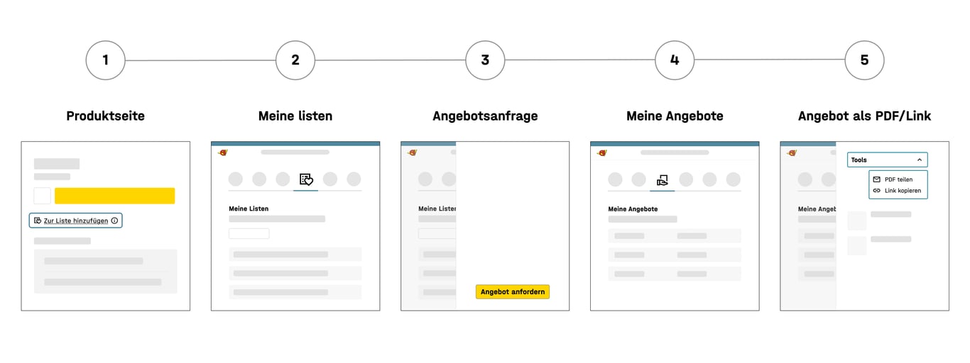Alle Angebote findest du gebündelt unter „Meine Angebote“, auch jene, die im Gespräch mit unserem Verkauf erstellt wurden. Du erhältst eine E-Mail, sobald dein Angebot vorliegt, und kannst anschließend direkt aus „Meine Angebote“ eine Bestellung auslösen.